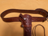 Hier versteigere / verkaufe ich einen Leder-Westerngürtel mit Holster für einen Single Aktion Revolver Cal. 45, mexikanische Handarbeit der Firma VIKING 710068 in einem guten Zustand ( 2+ ), mit Blumenornamenten passend zum Gürtel. Gürtellänge von ca. 75 cm - ca.95 cm, Breite ca. 4,5 cm. Kleine Lederschlaufe für Befestigung am Bein. Privatverkauf. DHL-Versand innerhalb Deutschland.