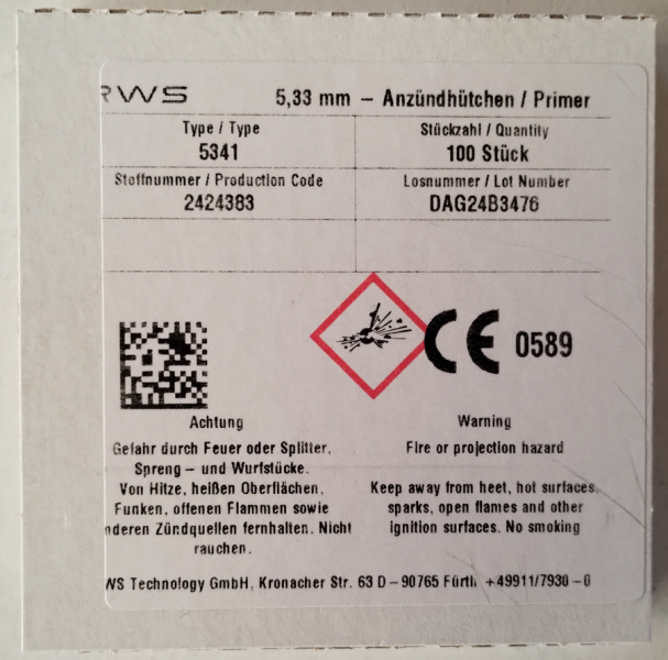 RWS LARGE RIFLE LR 5341 100 Zündhütchen