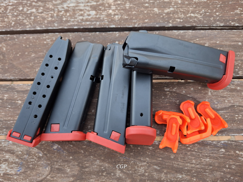 Modell / Marke : Sig Sauer P250 DAO Teil : 5 Magazine , Kal. 9x19 - 15 Schuss (gesetzeskonform ! ) roter Magazinboden für Trainigsmodell- original Sig Sauer Ware !