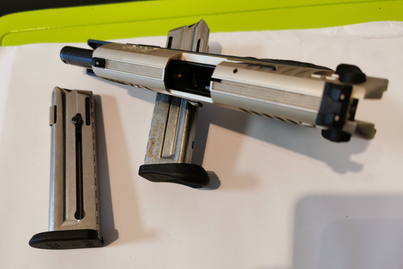 Walther P22 mit vernickelten u. gebürsteten Schlitten