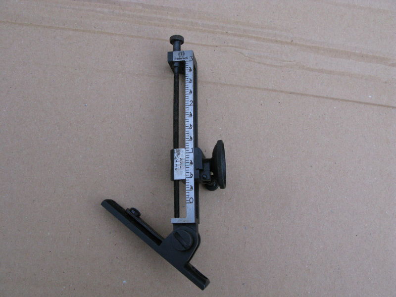 Hier biete ich aus den Beständen eines Schützenkameraden, der sich aus dem aktiven Schießsport zurückzieht, diesen Diopter an. Er ist in sehr gutem Zustand mit leichten Lagerspuren. Er hat drei Befestigungsbohrungen, zwei runde mit 5mm Durchmesser und am anderen Ende ein Langloch mit 5x8mm. Die beiden runden Bohrungen sind 20mm voneinander entfernt, das Langloch vom am weitesten entfernten runden Loch 57mm. Der gesamte Sockel ist 70mm lang und 12mm breit und an der Unterseite leicht gewölbt.