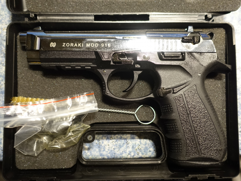 Zoraki 918 chrom, ungeschossen, mit Magazin, Bürste, Abschussbecher.