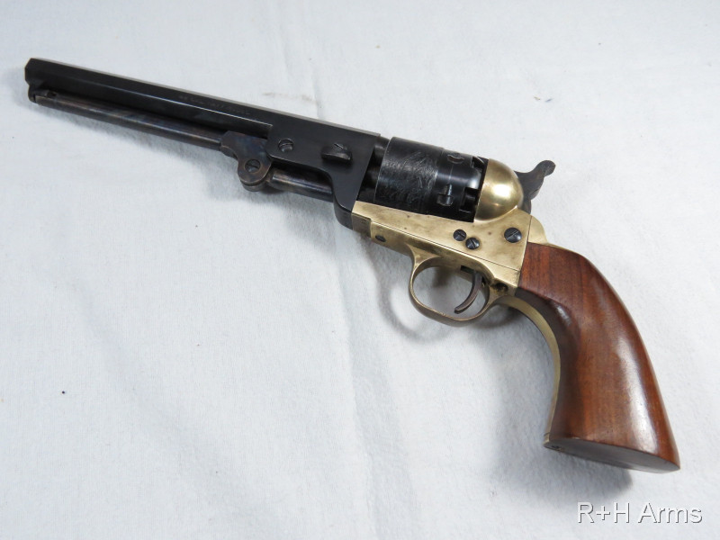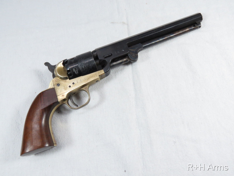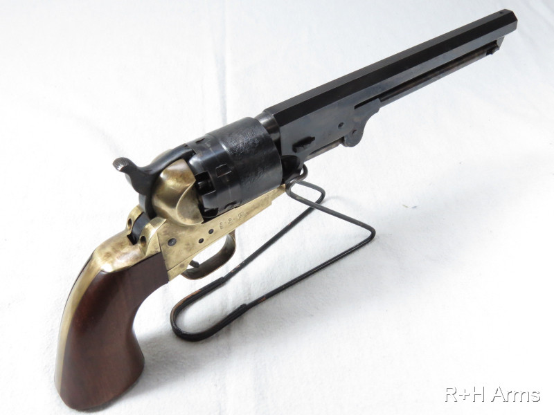 Vorderlader-Revolver Navy Model - Kaliber 44 - Hersteller Euroarms Italien. Lauf sehr gut blank. Leider fehlt das Korn sonst guter gebrauchter Zustand mit Gebrauchsspuren siehe Bilder. Verkauf nur an EWB.