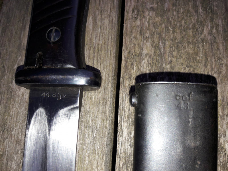 Originales Heeres Koppelschloss & Koppel der Wehrmacht , guter Zustand - Leder top - Gott mit uns + Adler + Hk vorhanden und unbeschädigt , Länge 98 cm & Originales SG 84/98 III ( 44agv - 8697 b ) , Scheide ( cof43 ) , viele WaA Stempel , guter Zustand .