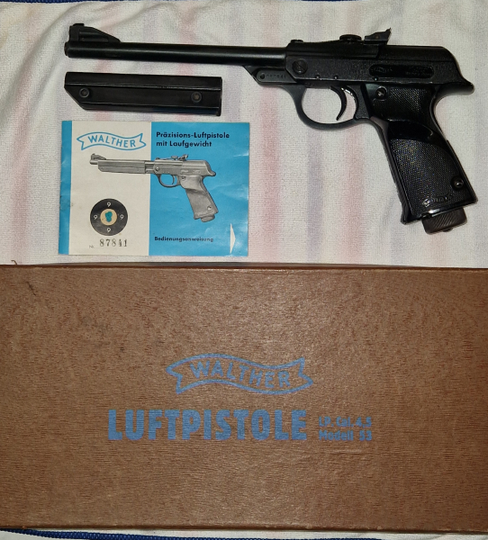 Ich biete hier eine Walther LP53 Luftpistole mit Laufgewicht.