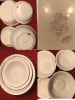 4, Emaille Schüsseln weiss mit blauen Rand Emailliert