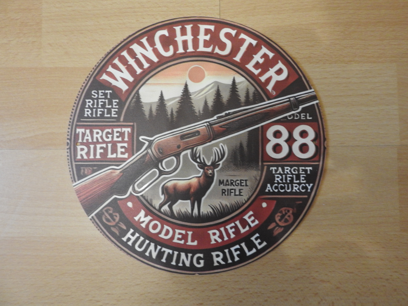 Biete rundes Blech-Werbe/Dekoschild für Winchester 88. Das Schild ist in hervorragendem Zustand und wurde wahrscheinlich im Siebdruckverfahren hergestellt. Alter und Herkunft des Schildes sind mir unbekannt. Das Schild hat einen Durchmesser von 20 cm.