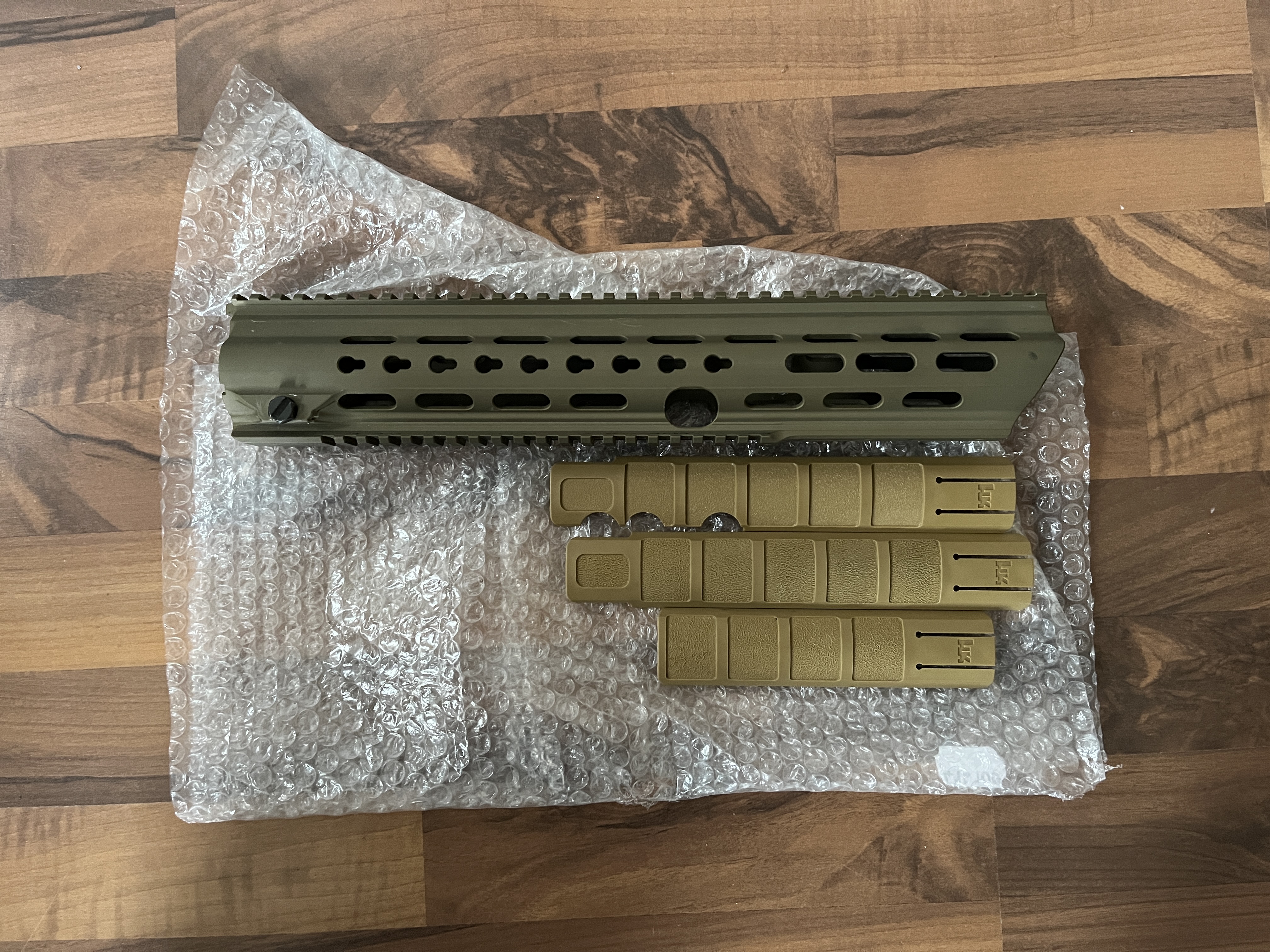 Der Handschutz stammt von einer HK MR223 A3 von 2018 mit deutschem Beschuss. Der Handschutz wurde durch ein anderes Modell ersetzt und liegt seitdem im Schrank und nimmt mir nur unnötig Platz weg.