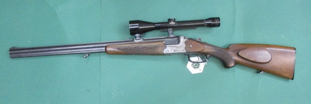 Angeboten wirde eine sehr gut erhaltene Heym Bockbüchsflinte im Kal. 16/70 und .222 Rem . Ausgestattet mit einem ZF Hertel & Reuss , 2x-10x 50 , Abs 1 auf SEM . Verschluss dicht und stramm , beide Läufe top . Waffenlänge 102 cm , Schaftlänge 36 cm , Lauflänge 60 cm . Versand ins Ausland nur über einen Exporteur .