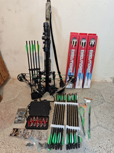 Verkaufe meine Horizone Armbrust im sehr guten/neuwertigen Zustand. Sie wurde nur an einem Nachmittag mit den 5 im Köcher befindlichen Pfeilen geschossen und seither trocken im Schrank gelagert. Das Angebot umfasst umfangreiches Zubehör — ideal als komplettes Starter-/Ersatzpaket.