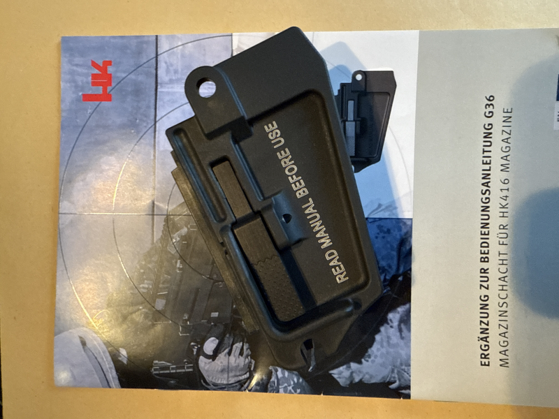 Original Heckler und Koch Magazinschacht für HK 243 / G36 schwarz, ermöglicht Aufnahme von standard Ar15 Magazinen.