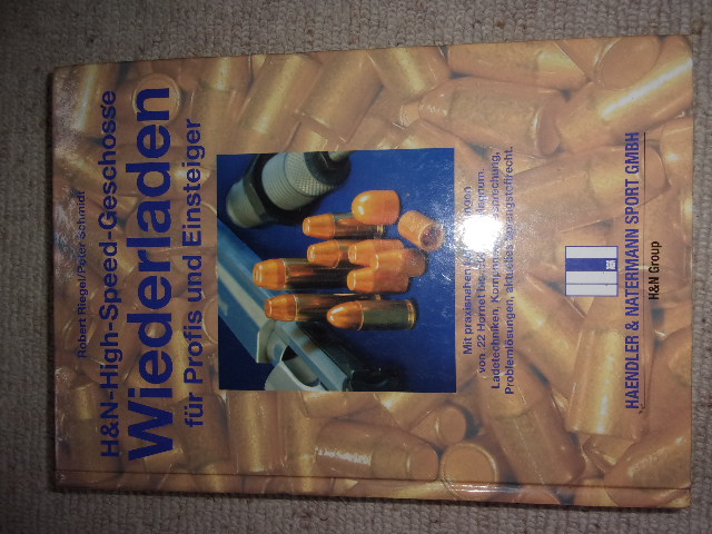 Wiederladen für Profis und Einsteiger mit H&N-High-Speed-Geschossen von R.Riegel/P. Schmidt, Verlag H&N Sport GmbH, Auflage von 2004, 288 Seiten, Hardcover, mit zahlreichen Fotos, Zeichnungen und Tabellen, neuwertiges Exemplar, untere hintere Ecke minimalst bestoßen