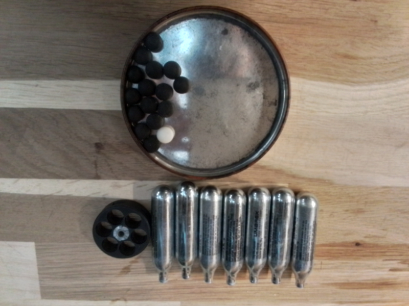 T4E TR50 Trommel mit sieben vollen 12g CO2 Kapseln und 16 Rundkugeln. Alles noch unbenutzt. Da ich privat verkaufe,keine Garantie oder Rücknahme
