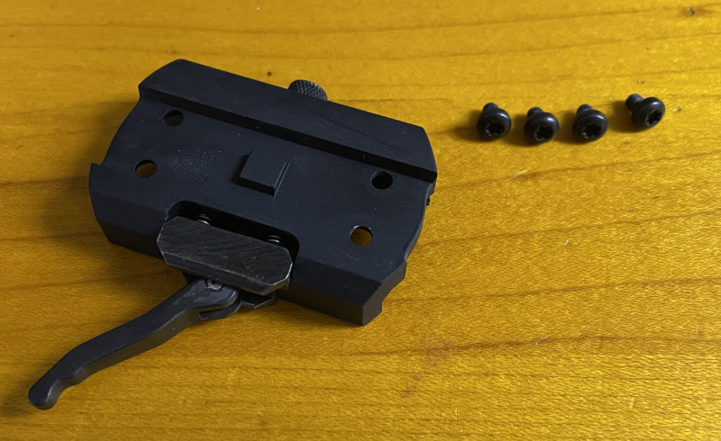Bei der Montage sollte es sich um Originalteile von Aimpoint handeln. Ich habe diese hier zusammen mit einem Aimpoint Micro T-1 gekauft. Die Montage habe ich nun übrig - das T-1 behalte ich. Die Platte erhöht um ca. 4 mm über der Picatinny-/Weaverschiene.