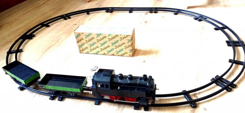 Biete eine Uhrwerklokomotive von ZEUKE mit zwei Wagen und Schienenoval. Spur 0. Material Guß, Wagen und Schienen aus Blech. Schlüssel ist dabei. Lok läuft sehr gut. Privatverkauf! KEINE Rücknahme!