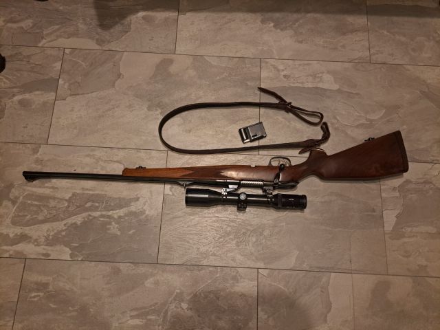 Krico Repetierbüchse .222 Rem. mit 4 Schuss Magazin. Die Waffe wurde immer gepflegt und nur von mir selbst zum Pokal Schiessen verwendet. Normale Gebrauchsspuren sind vorhanden. Das ZF (Karl Kahles Helia S 2,2-9X42) ist klar und hat absehen 4, Kratzer auf den Linsen konnte ich mit meinem Auge nicht feststellen. Die Büchse hat einen Deutschen Stecher und funktioniert einwandfrei. Der Lauf ist spiegelblank und weist auch keinen Rost auf. Die Gesamtlänge beträgt 1096mm, Lauf bis Stoßboden 607mm, Abzug bis Ende Schaft ca. 355mm. Dazu gibt es den Trageriemen und ein zweites ZF (Zeiss) welches aber nicht auf die vorhandene Montage passt. Dieses hat einen Minikratzer auf der Linse welcher aber kaum auffällt. Die Rest Munition insgesamt 528 Schuss (Wert ca. 480€) gehören mit zum Angebot.