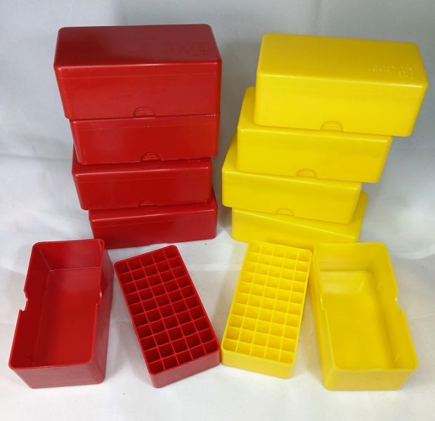 10 x Stülpdeckel Patronenboxen, 5 x Rot, 5 x Gelb. Gebraucht