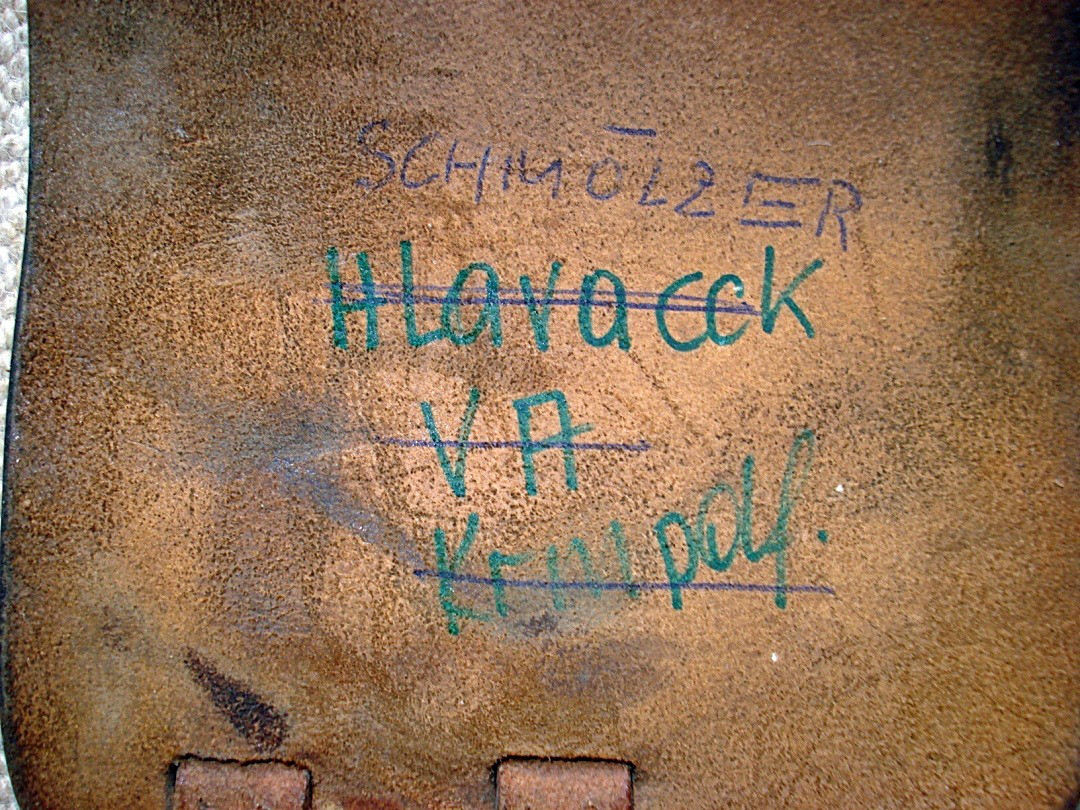 Im Deckel innen sind Namenseinträge der ehemaligen Träger zu erkennen.