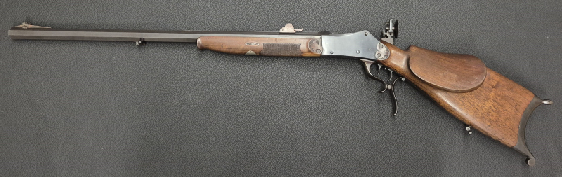 Sie bieten auf eine Historische Scheibenbüchse / Original Striegele München Kal. 22lr mit Blockverschluß und Tiroler-Schaft.