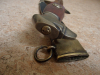 Die schwarz lackierte Scheide hat Messingbeschläge und einen Tragering.