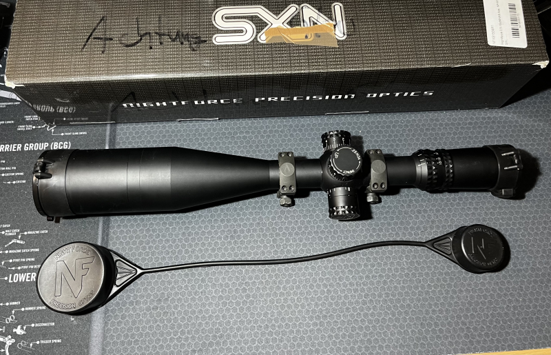 Angeboten wird ein Zielfernrohr Nightforce 3.5-15x56 mit beleuchtbarem Absehen NP-R1 auf der 2. Bildebene inklusive Picatinny-Montageringe.