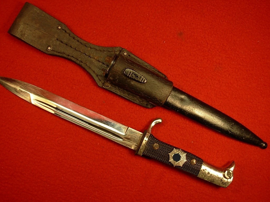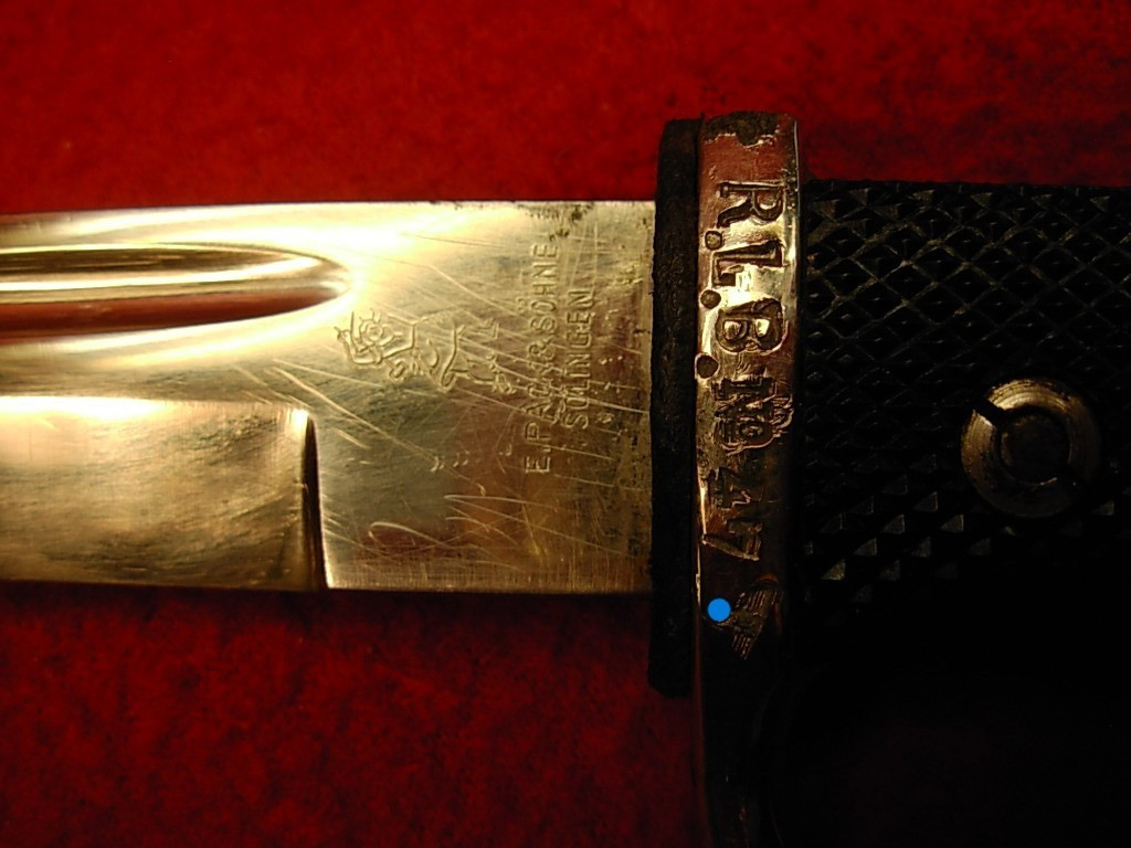 II.WK – RLB – Reichsluftschutz Seitengewehr – Bajonett mit Gardestern – Abnahme an der Parierstange – mit Koppelschuh –