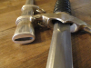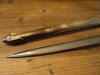 Heute bekommen. Bahnschutz Führerdolch 2.Generation. Tolles, schweres Stück. Scheide etwas angelaufen. Sieht wie Neusilber oder vernickelt aus. Die Trageringe kann man abnehmen. Leider habe ich keinen Hersteller finden können. Ich habe ihn aber auch nicht auseinander geschraubt. Seht selber. Achtet auch auf meine anderen Auktionen.