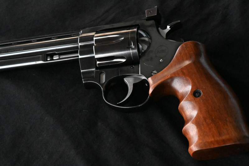 Revolver Korth Cal. .357 magn. Lauflänge 6" Magazinkapazität 6 Schuss, Trommel herausnehmbar, Gewicht ca. 1150g, Nussholzgriffschalen + original Griffschalen, Lauf spiegelblank, Kimme Höhen- und Seitenverstellung, Waffenfabrik Korth Ratzeburg, leichte Gebrauchspuren an Brünnierung