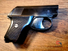 Angeboten wird eine technisch einwandfreie Schreckschuss Pistole der Firma Mayer & Riehm KG vom Typ Perfecta Mod. "G". Das Besondere an dieser kleine Pistole ist der völlig automatische Hülsenauswurf nach jedem Schuss. Man muss also bei einem leer geschossenen Magazin nicht erst mühsam die leeren Hülsen herausstochern, wie z.B. bei der RG 300. Die Waffe ist gebraucht, der Zustand ist auf den Bildern ersichtlich, welche ein grundlegender Bestandteil dieses Angebotes sind. Bei beiden Griffschalen ist die obere, jeweils hintere Ecke im Bereich von 3 bzw. 5 mm abgebrochen, wodurch das Gesamtbild aber nicht in Mitleidenschaft gezogen wird.