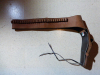 Ich verkaufe einen gebrauchten Westerngürtel mit Revolverholster und Patronenschlaufen aus Leder. Made in Mexiko. Die Nähte sind fest. Beinriemen, Sicherungsriemen usw vorhanden. Das Holster stammt aus einer Erbschaft.