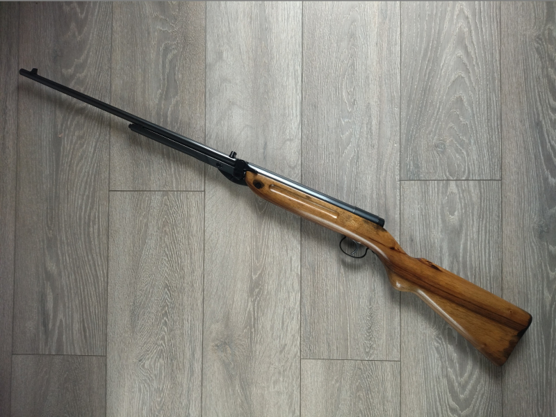 Das Luftgewehr befindet sich in einem sehr guten und voll funktionsfähigen Zustand. Ausgerüstet mit verbesserte Abzugseinheit, welche eine weiche Einstellung bietet. Mechanik ist in perfekter Kondition, besteht aus allen originellen Teile, nichts wackelt sich, schiesst mit höher Schussleistung (175 m/s) und Präzision. Herstell Nummer "65" findet man am Ladewalze und passende Abdeckplatte. Brunierung ohne Rost, Schaft aus hochwertigem Nussbaumholz, keine Brüche, keine Rissen, nur leicht verdunkelt im Bereich von Schaftschrauben, und bei Stahl Schaftkappe. Mehr Bildern gerne per Mail.
