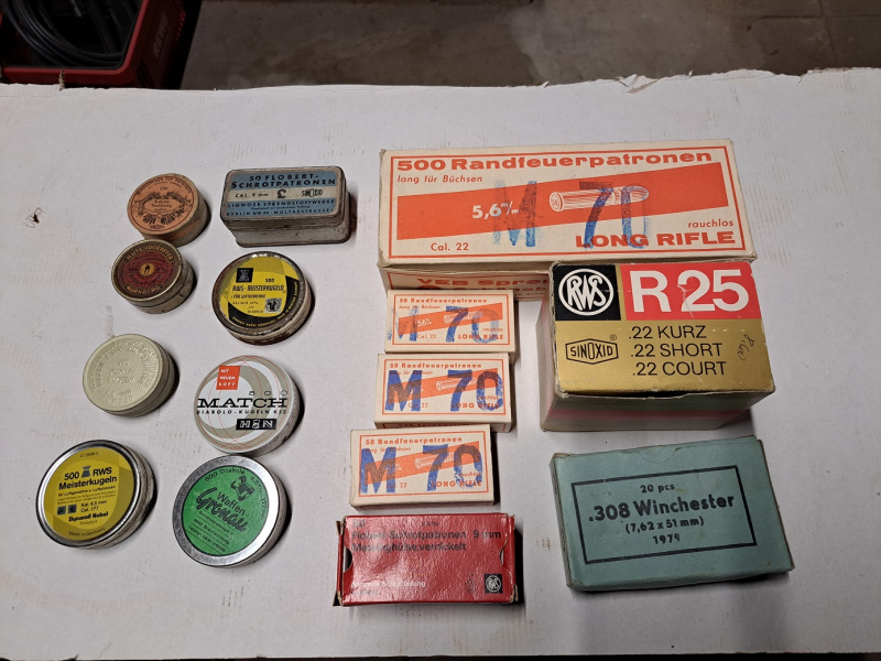 Aus Nachlass von meinem Großvater: Konvolut alte leere Schachteln für Munition aus blech, Pappe, Kunststoff, diverse Hersteller, die es zum Teil nicht mehr gibt. Für Sammler