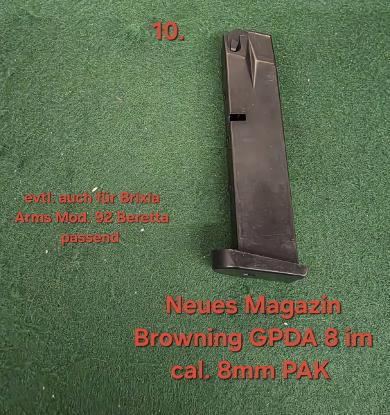 10.) Neues Browning GPDA 8 Brixia ? Magazin Schreckschuss 8mm Knall 9mm .315 PAK