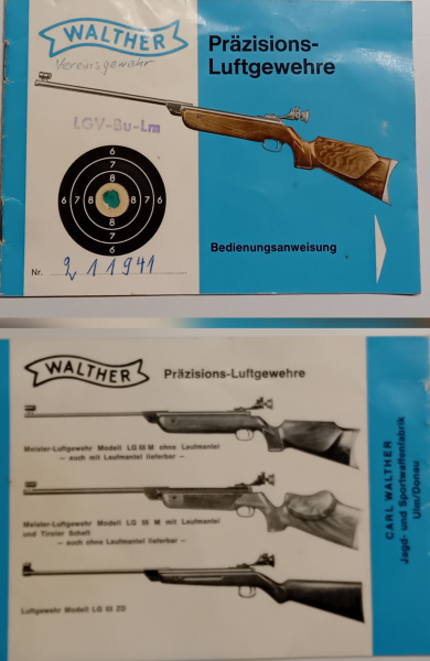 Bedienungsanleitung 11 Seiten für WALTHER Präzisions - Luftgewehre. Der Verkauf erfolgt nur gegen Vorkasse oder Abholung bei Barzahlung. Versand versichert in Deutschland 8,- Euro ins EU - Ausland 18,- Euro