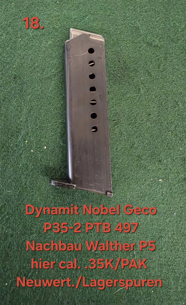 18.) Dynamit Nobel Geco Mod. P35-2 PTB 497 Magazin Schreckschuss Cal. .35 PAK P35 Walther P5