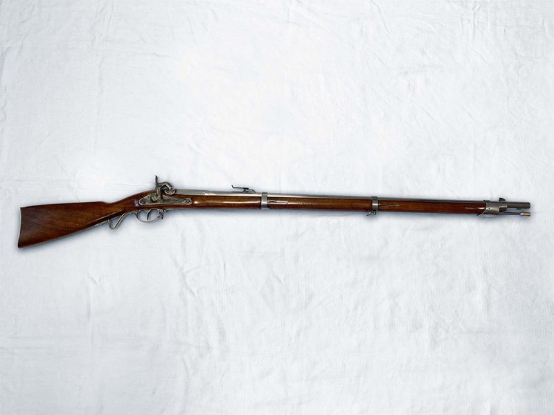 Nachbau des Infanteriegewehrs 1857, wie es von der "Königlich Württembergischen Gewehrfabrik Oberndorf" (später der Mauser-Werke) produziert wurde. Perkussion Cal. 54, so gut wie nicht geschossen. Sehr guter Zustand mit leichten Gebrauchsspuren (die Fotos täuschen wirklich, das Gewehr sieht in natura meiner Meinung nach viel besser aus). Ein schönes Gewehr mit guter Verarbeitung. Aufgrund der Länge nur als Sperrgut versendbar.