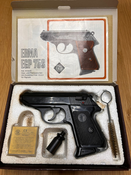 Beste ERMA EGP 75S für Verteidigung 8mm, minimal verbaut, wie damals erlaubt OVP - Wie neu Sammler