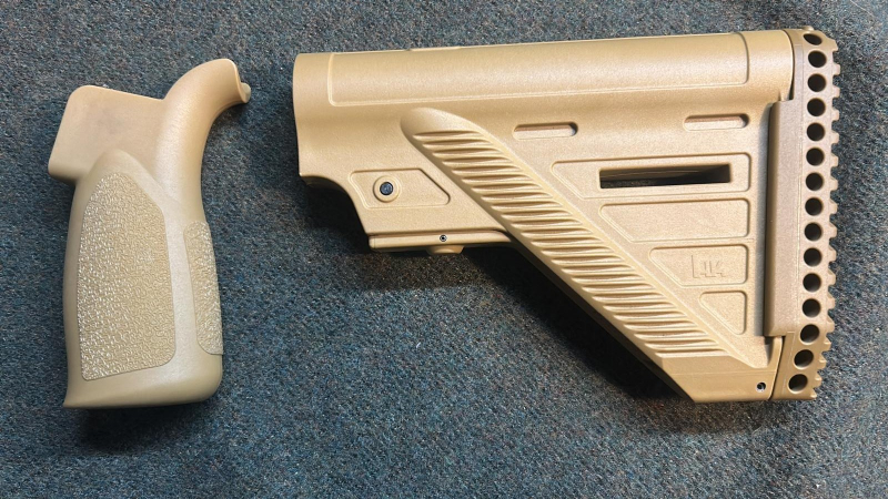 Verkaufe ein original HK Griff und Schulterstütze / Schaft / Schulterschaft in der Farbe Sand.