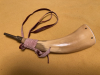 Hier versteigere / verkaufe ich aus einem Nachlass ein sehr schönes, glänzendes Füll-Pulverhorn mit Trageband und Pulverstopper. Der Drücker funktioniert einwandfrei und ist dich.Das Horn ist ohne Beschädigungen und der Lack einwandfrei. Es hat eine Gesamtlänge von ca. 27 cm mit dem Füllverschluss. Die Unterseite-Boden ist ca. 6,5 cm lang und ca. 38 cm breit und ist mit einer festen Lederkappe verschlossen. Privatverkauf. DHL-Versand innerhalb Deutschland.