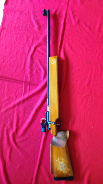 Wir bieten ein Matchgewehr Kal. .22lr wie sie in der DDR in den Sportvereinen verwendet wurden. Das Gewehr ist, was die Metalle anbelangt, makellos. Es ist eine Einzelladerbüchse. Lauflänge 65 cm. Korn und der Diopter sind einwandfrei. Am Lackschaft sind Kratzer. Auf der rechten Seite des Schaftes war einmal die Zahl 25, das wurde aber heraus geschabt. Bei Versandkosten habe ich 49,00 € angegeben. Das könnte aber aufgrund des Gewichts der Waffe höher sein.