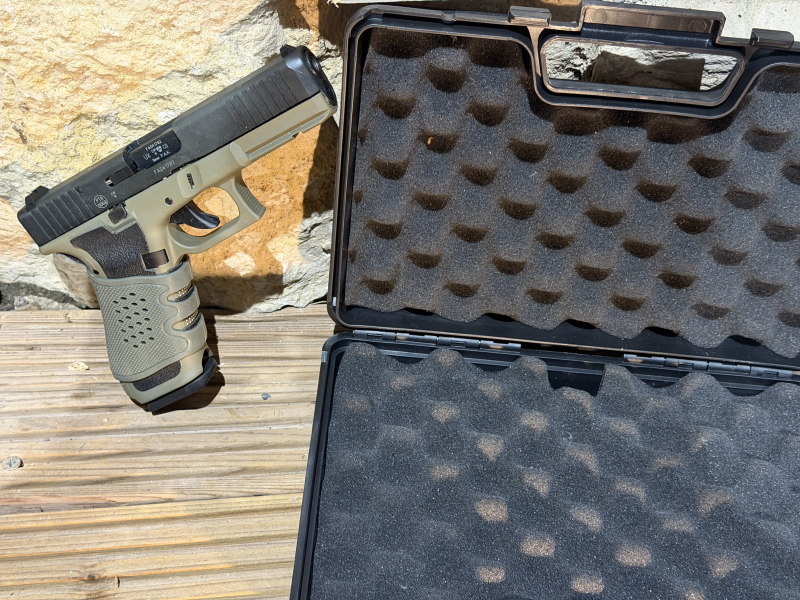 Verkaufe meine zweimal geschossene Glock 17 Sondermodell Battlefield Green. Zusätzlich habe ich noch den Slingadapter hinten am Griff angebracht, womit die Waffe per Kordel oder Strip am Gürtel befestigt werden kann. Ebenfall dabei, ein passender Gummiüberzug für den Griff und der Griff hat zusätzlich noch aufgeklebte original Glock 17 Gripaufkleber.