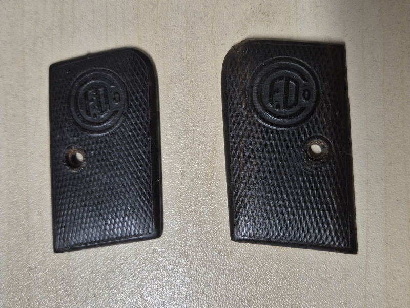Sie bieten auf die beiden abgebildeten Griffschalen. Diese gehören zu einer belgischen Taschenpistole, Fabrique d'Armes F. DELU in 6.35mm