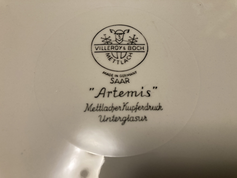 Hier kommt zur Versteigerung ein Teilprogramm von VILLEROY & BOCH " ARTEMIS " 18 Teile - 6 gr. Eßteller und 6 Suppenschalen mit Unterteller. Neuwertig. Vitrinen Ware. Mettlacher Kupferdruck UNTERGLASUR. Jagdmotive in grau. Privatverkauf. Dhl-Versand oder Selbstabholer.