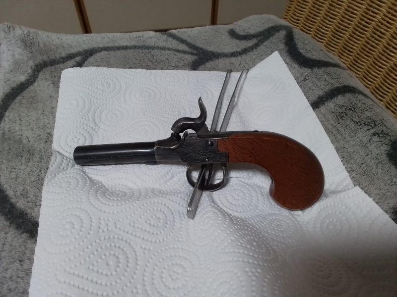 Hier dieser hübsche kleine Derringer mit abschraubbarem Lauf.