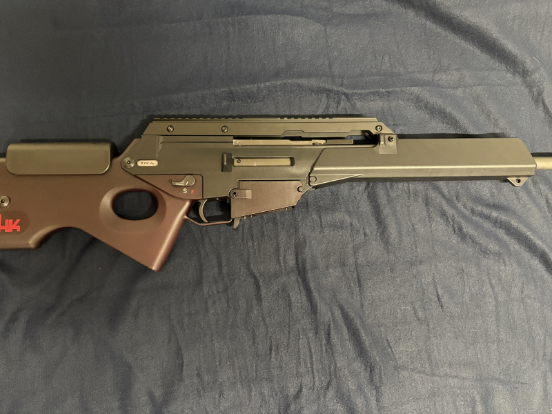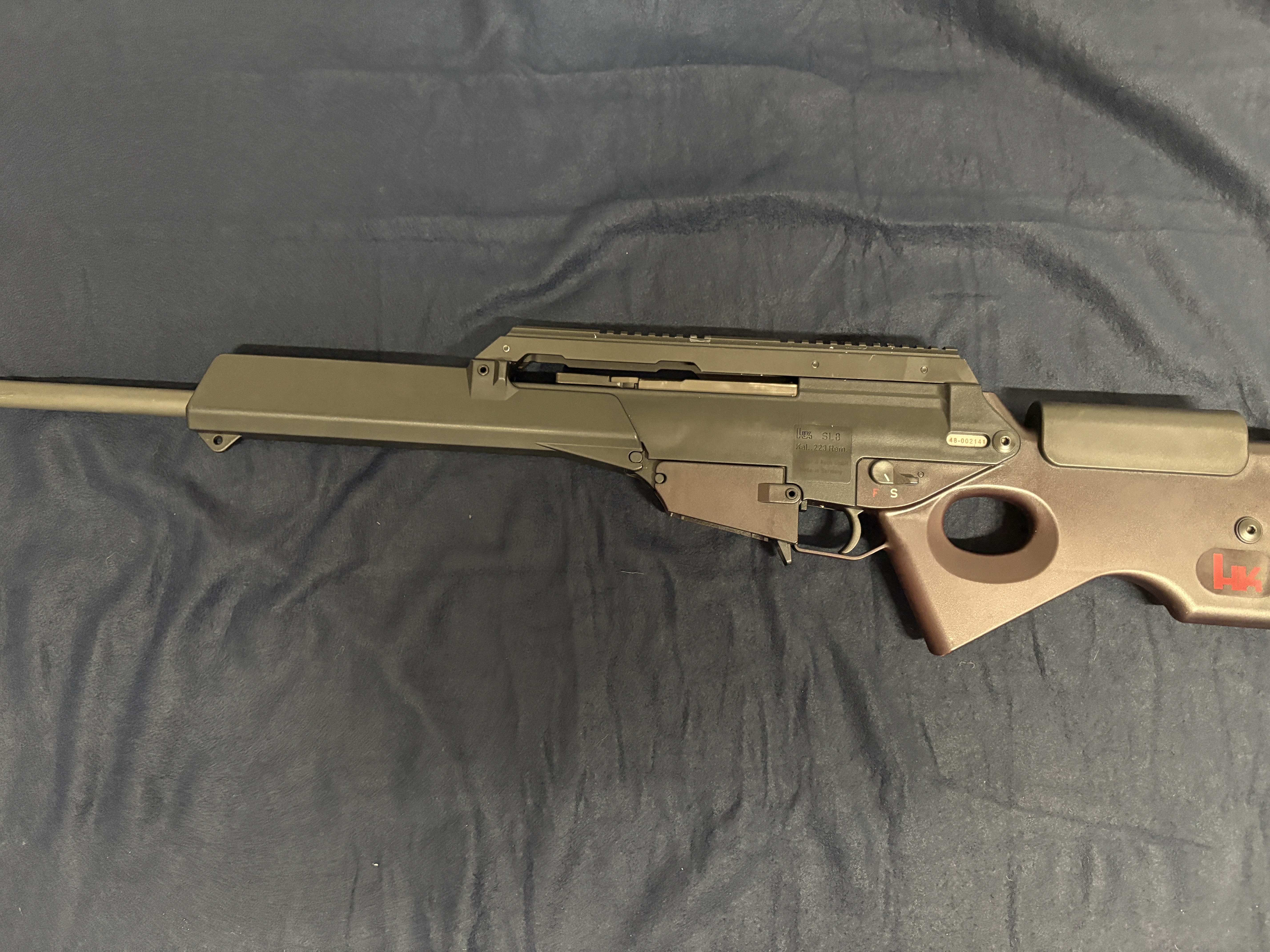 Biete meine Heckler & Koch SL8 zum Verkauf. Ich habe sie selbst gebraucht erworben. Es handelt sich um eine Selbstladebüchse der 1. Generation (sie wurde professionell geschwärzt). Bei mir ist sie eine reine Schrankwaffe. Sie ist im Kaliber .223 Remington. Gegen Aufpreis kann eine Original Heckler & Koch Tasche/ Futteral erworben werden.