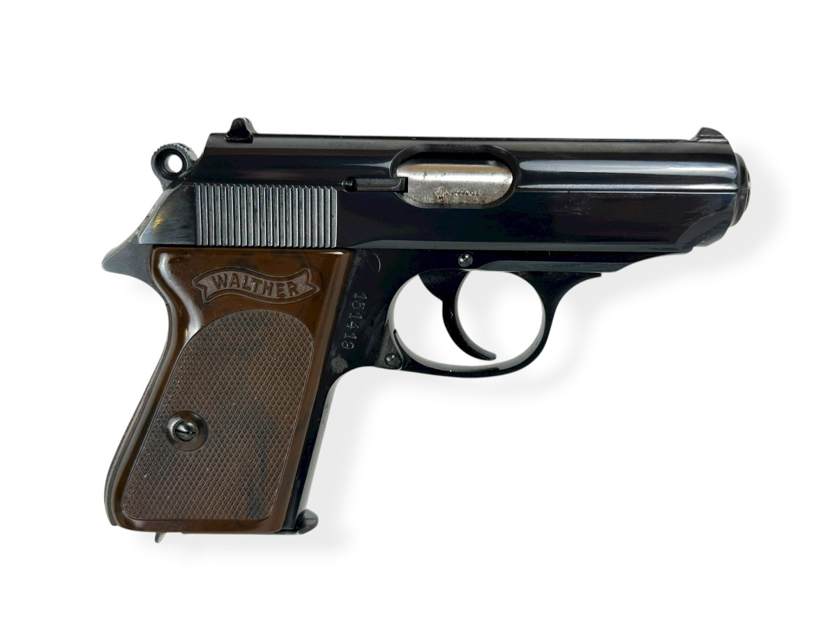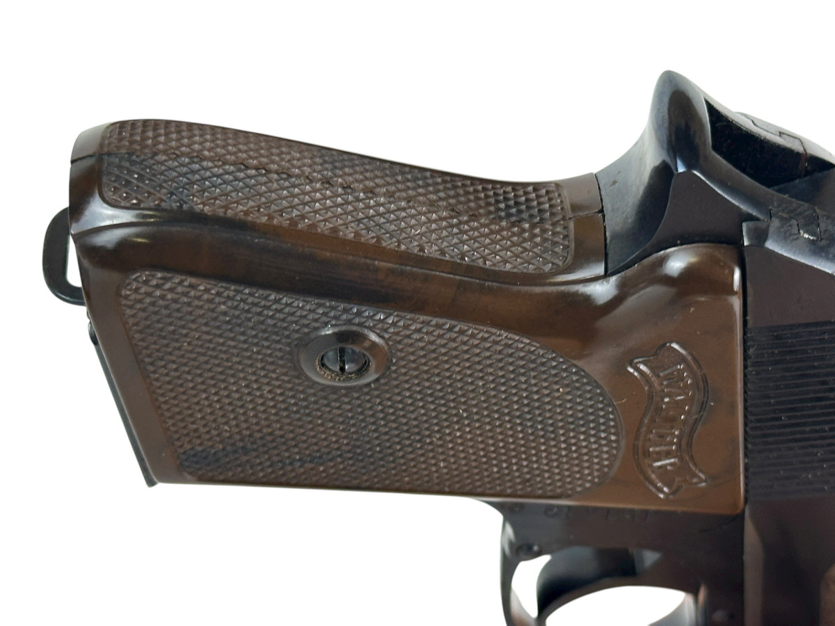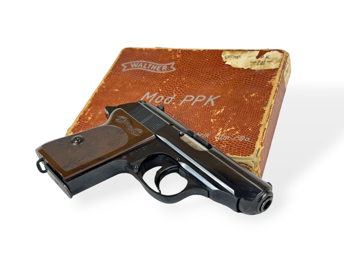 Versteigert wird hier eine Walther PPK im typischen Kaliber 7,65mm Browning mit Beschussjahr 1961. Inklusive Karton (dieser ist ein bisschen geknautscht & abgestoßen). Siehe Fotos.