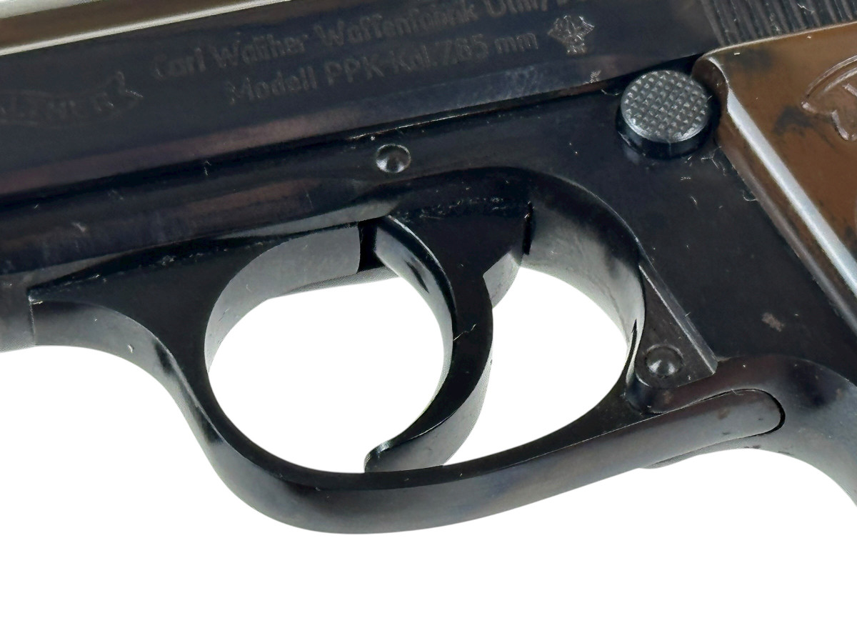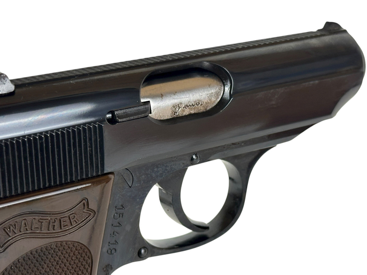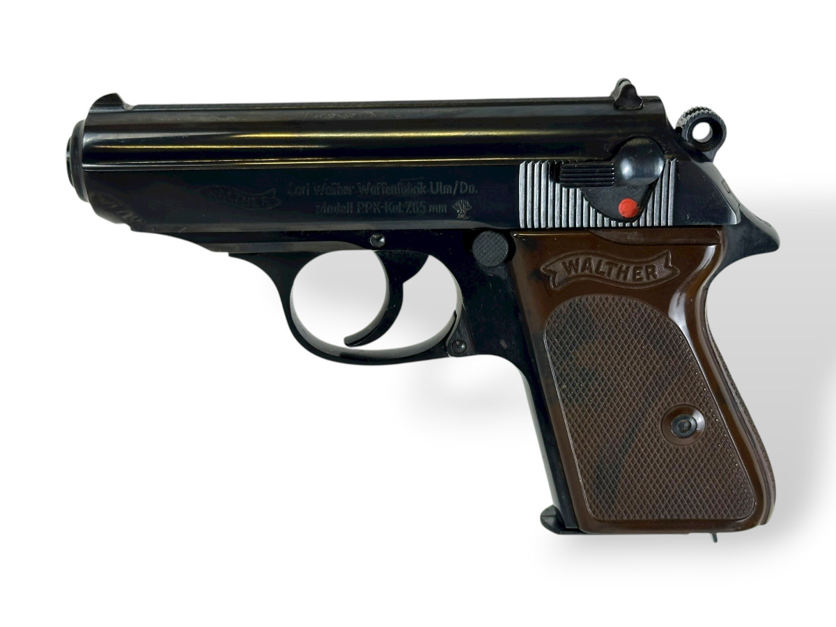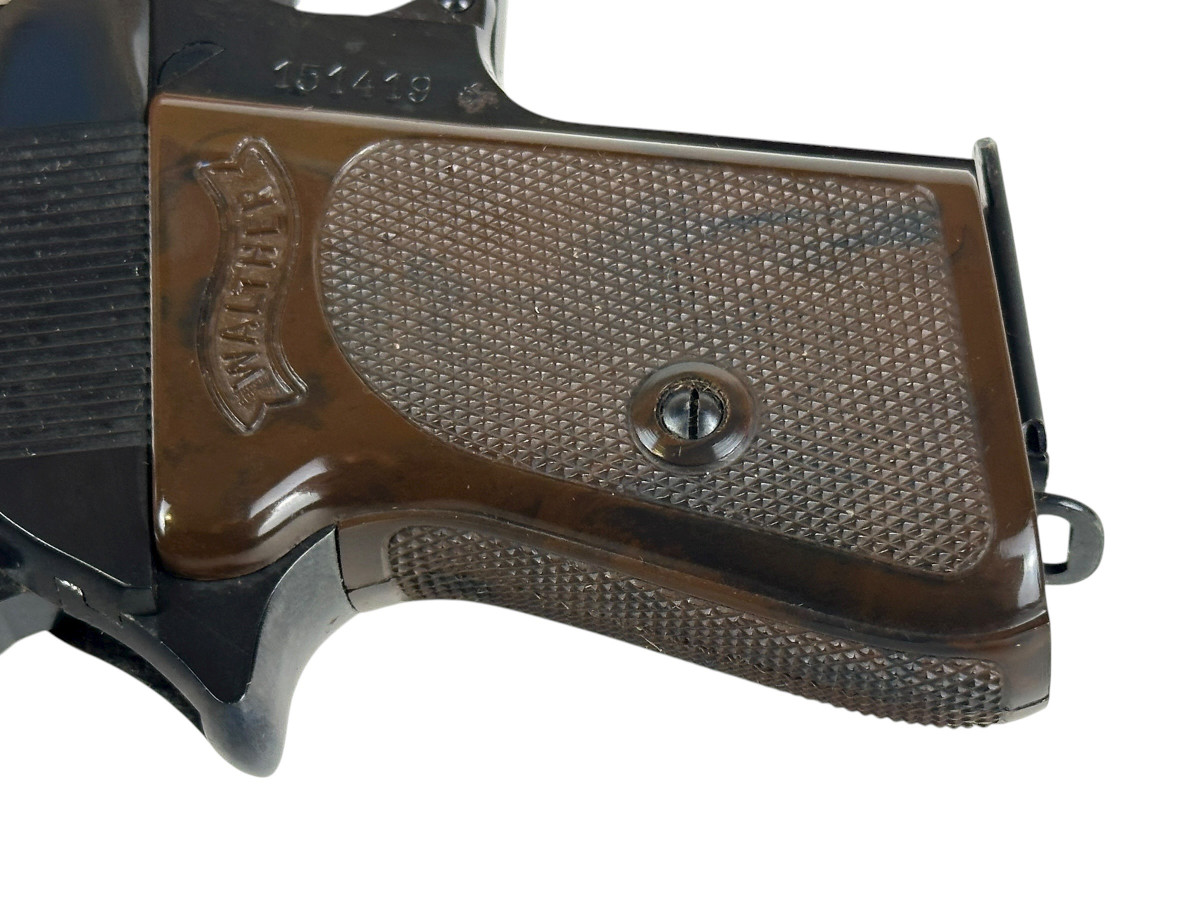Versteigert wird hier eine Walther PPK im typischen Kaliber 7,65mm Browning mit Beschussjahr 1961. Inklusive Karton (dieser ist ein bisschen geknautscht & abgestoßen). Siehe Fotos.