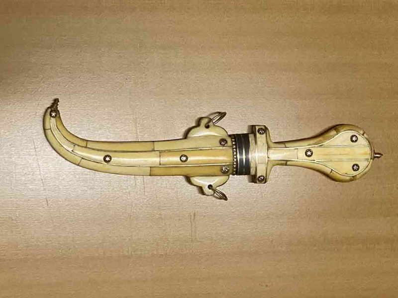 Krummdolch, Orient oder Afrika, genaue Herkunft und Alter unbekannt. Besatz offenbar aus Knochen. Verkauf/Versand nur gegen Altersnachweis (ab 18 Jahren).