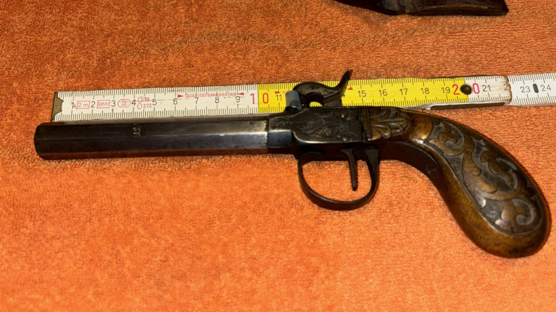 Dieser alte kleine Derringer mit Holster ist äußerlich in einem guten Zustand. Allerdings funktioniert die Laderaste nicht, von daher biete ich diesen Derringer für Liebhaber und Bastler an!