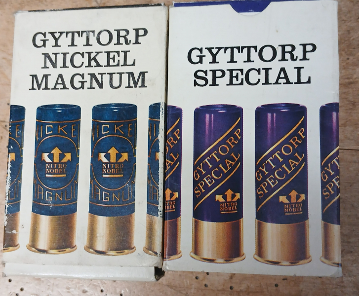 100 Patronen Gyttorp im Kal. 12/70; davon sind 40 Patronen Gyttorp special und 60 Stück Nickel Magnum; original verpackt
